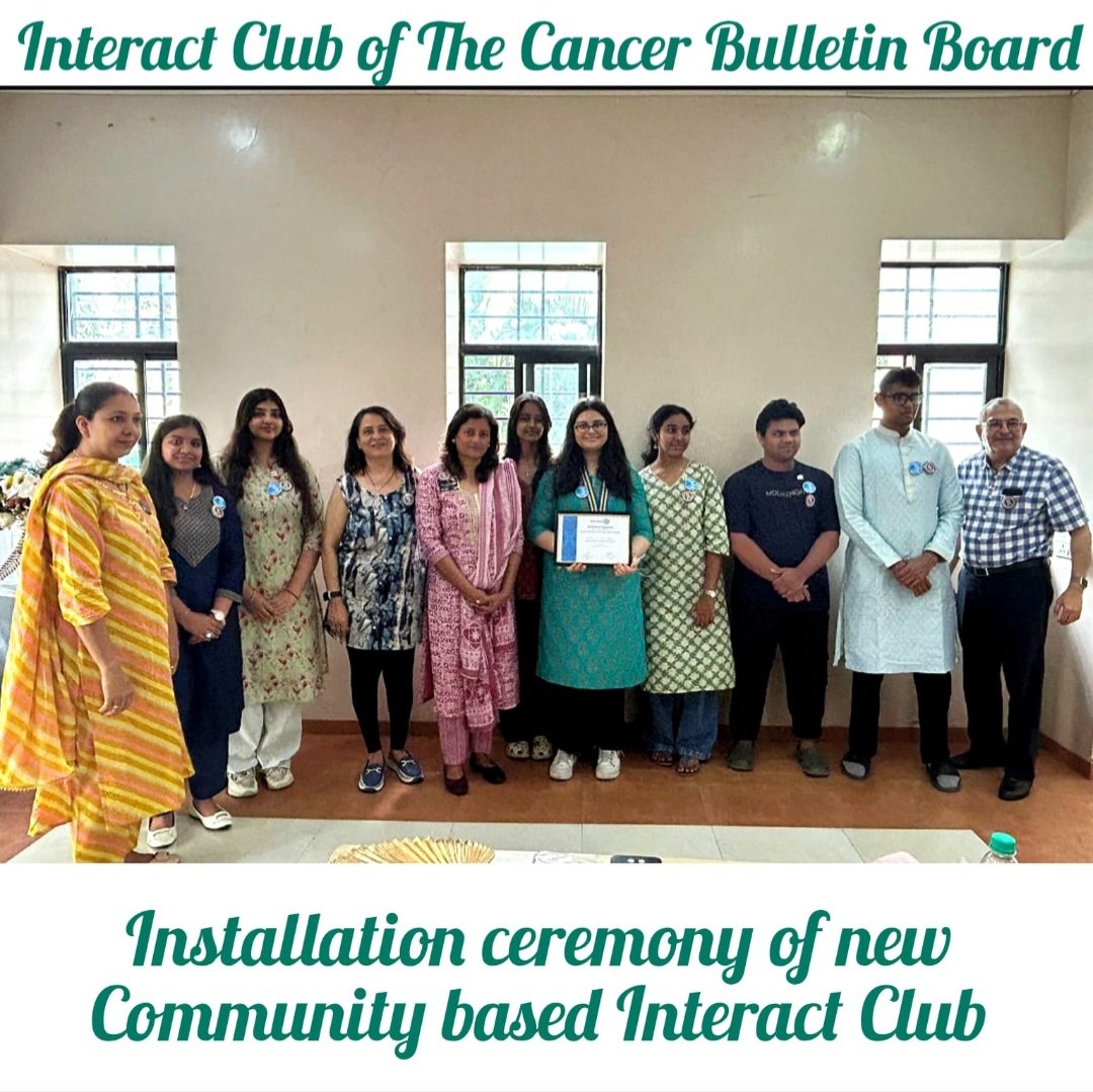 “Installation Ceremony of the FIRST Community based Interact Club.. The Interact Club of Cancer Bulletin Board: The Interact Club members strive to ignite hope, raise awareness, and take ...