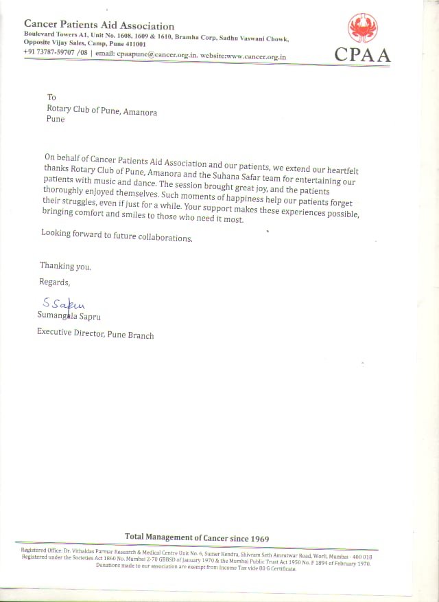 SuhanaSafar Celebrates World Rose Day with Cancer Warriors On September 24, the SuhanaSafar team of RCP Amanora brought smiles to cancer patients at the Cancer Patients’ Aid Association i ...